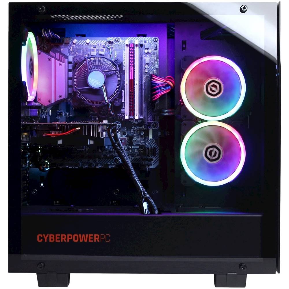 Loading... Please wait...CyberPowerPC Gamer Xtreme Desktop: Play to your full potential with this CyberPower PC Gamer Xtreme gaming desktop computer. The Intel Core i5 processor and 8GB of RAM let you run AAA titles smoothly, while the 500GB SSD shortens load times letting you get into the action swiftly. This CyberPower PC Gamer Xtreme gaming desktop computer has an NVIDIA GeForce GTX 1650 SUPER graphics card that renders realistic visuals.