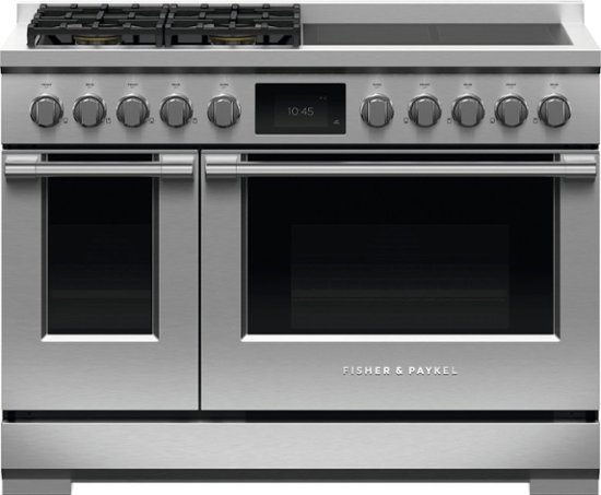 New ProductsComplete your kitchen setup with this 48-inch Fisher & Paykel dual-fuel range. The four burners have a range of BTU outputs for different cooking requirements, while the ample-sized oven accommodates large family meals. This Fisher & Paykel dual-fuel range has a self-cleaning function and self-clean-proof side racks for easy maintenance.