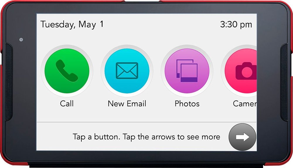 The simple design for seniors enables users to view family photos and videos, call loved ones, send voice emails, play classic games, and listen to their favorite tunes.