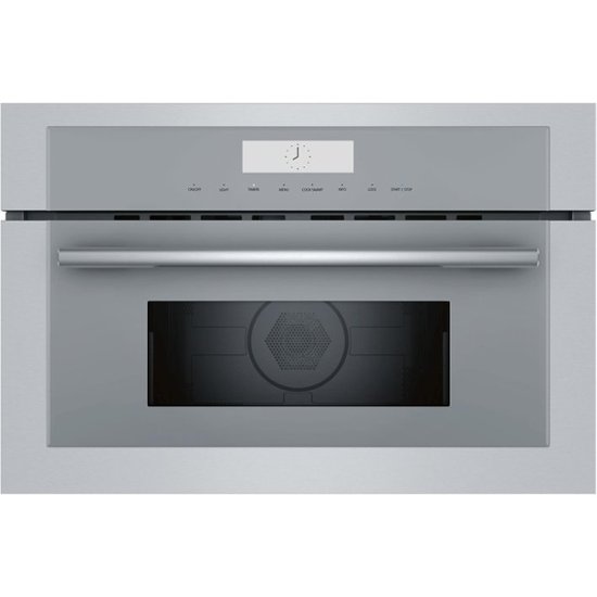 Bake and broil effortlessly with this 30-inch Thermador Masterpiece speed oven. Its 36 CookSmart automatic convection programs and 10 levels of microwave power provide versatile cooking, and the kitchen timer, touch control feature and panel lock setting add functionality. This flexible stainless steel Thermador Masterpiece speed oven installs horizontally or vertically.