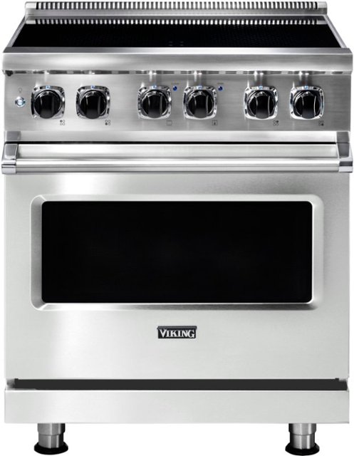 The Viking 5-Series induction self-cleaning range touts one of the largest oven cavities in the industry with 9 different cooking modes and 6 oven rack positions. The ceramic glass cooktop surface is both durable and easy to keep clean as induction keeps the cooking surface substantially cooler than a traditional all electric smoothtop.