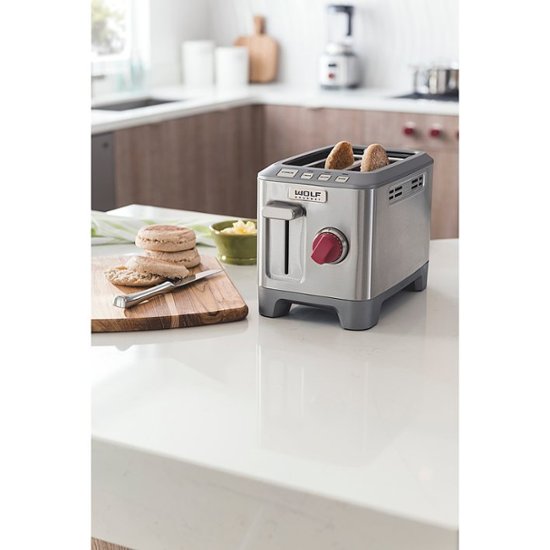 The Wolf Gourmet Two-Slice Toaster is built with the same durable stainless steel construction found in restaurant kitchens. It has extra-wide slots for artisan breads and bagels, advanced toasting technology and commercial-grade heating elements.